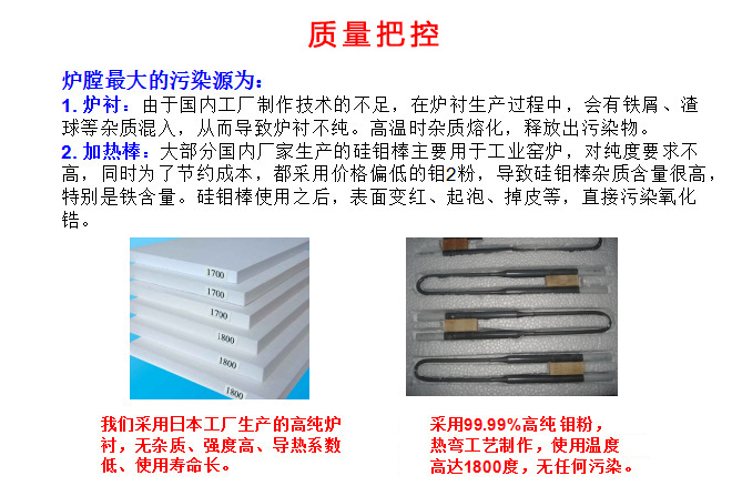 氧化鋯燒結(jié)爐主要用于義齒加工廠完成二氧化鋯牙冠的結(jié)晶燒結(jié)。該氧化鋯燒結(jié)爐采用1800純凈型加熱棒,對(duì)牙冠不會(huì)形成二次污染;氧化鋯燒結(jié)爐的爐膛采用四面加熱,比起傳統(tǒng)的馬弗爐結(jié)晶爐的溫場(chǎng)更均勻,燒成的牙冠通透性、一致性更好。該氧化鋯燒結(jié)爐取放料采用了更為人性化的下裝載模式,裝料方便,取料便捷;是義齒加工廠的理想選擇。