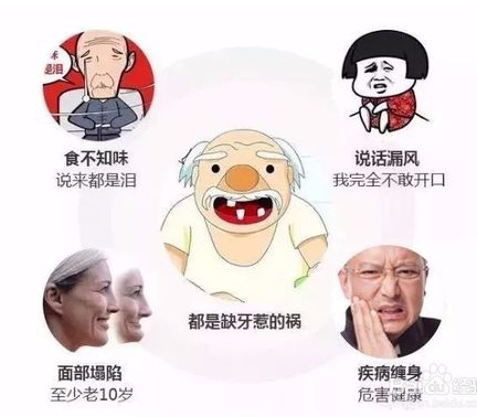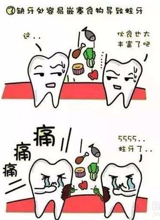 牙齒缺失了以后,在牙列中間留下了空隙,造成牙齒間較大的縫隙,易造成咬頜功能的紊亂。