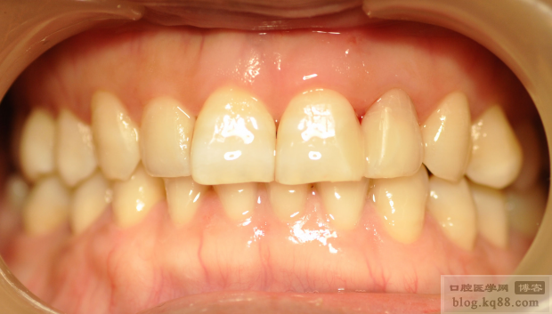 調(diào)磨拋光后,21的顏色稍微還有一點色差,自己不是很滿意,但是患者已經(jīng)很滿意