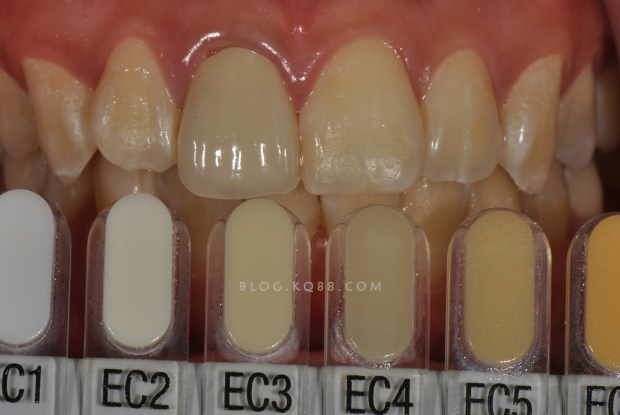 分成比色 板, 對牙本質(zhì)的顏色對比