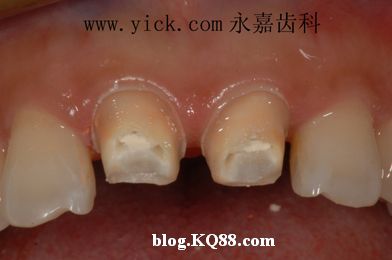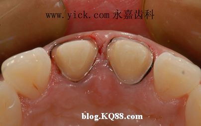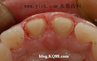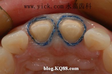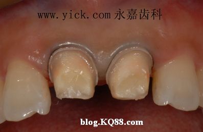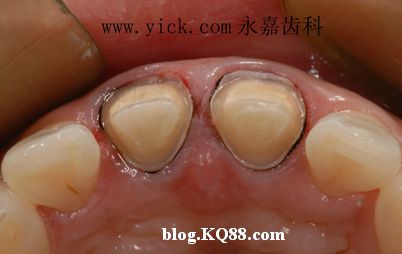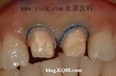 首先按常規(guī)方法完成牙體制備,制備牙體的肩臺(tái)位于齦上0.5mm或平齊牙齦,這時(shí)應(yīng)該將牙體基本制備完成,僅留下肩臺(tái)部分還沒有制備完成。